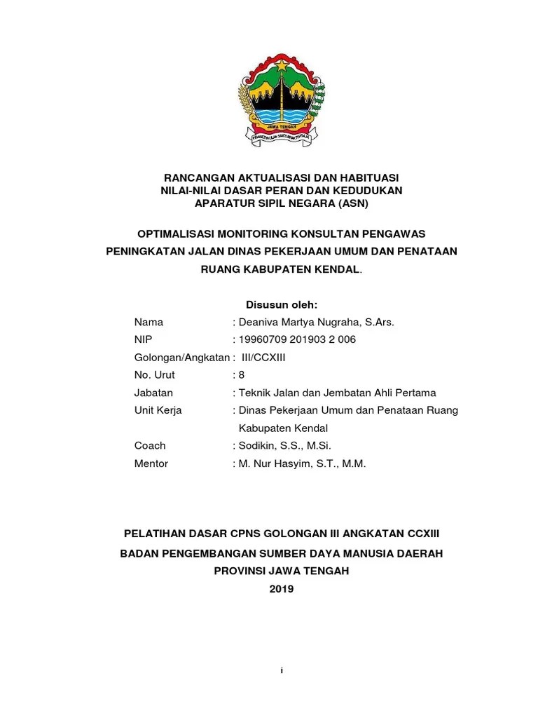 Kejaksaan negeri seram bagian timur telah diuji di depan tim penguji pada hari senin tanggal 14 oktober 2019 mentor, coach, stendo berthyno sitania,s.h fina rinzani, s.h, m nip. Rancangan aktualisasi latsar cpns 34wp0928dyl7. 29.05.2020 · contoh laporan aktualisasi cpns get link; 14.04.2021 · menunjukkan penguasaan kompetensi teknis yang dibutuhkan sesuai dengan bidang tugas. Misalnya jika sk tmt cpns anda adalah 1 maret 2020 dan sk tmt pns anda lebih dari 1 maret 2022, maka anda wajib memiliki surat pertimbangan teknis.